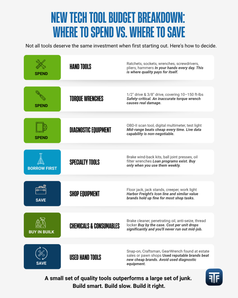 - What to avoid used: Diagnostic equipment, torque wrenches, and safety equipment (jack stands, etc.) should generally be purchased new or from a source where you can verify condition and calibration. The risk of inaccurate or failed equipment in these categories is too high to gamble on used.