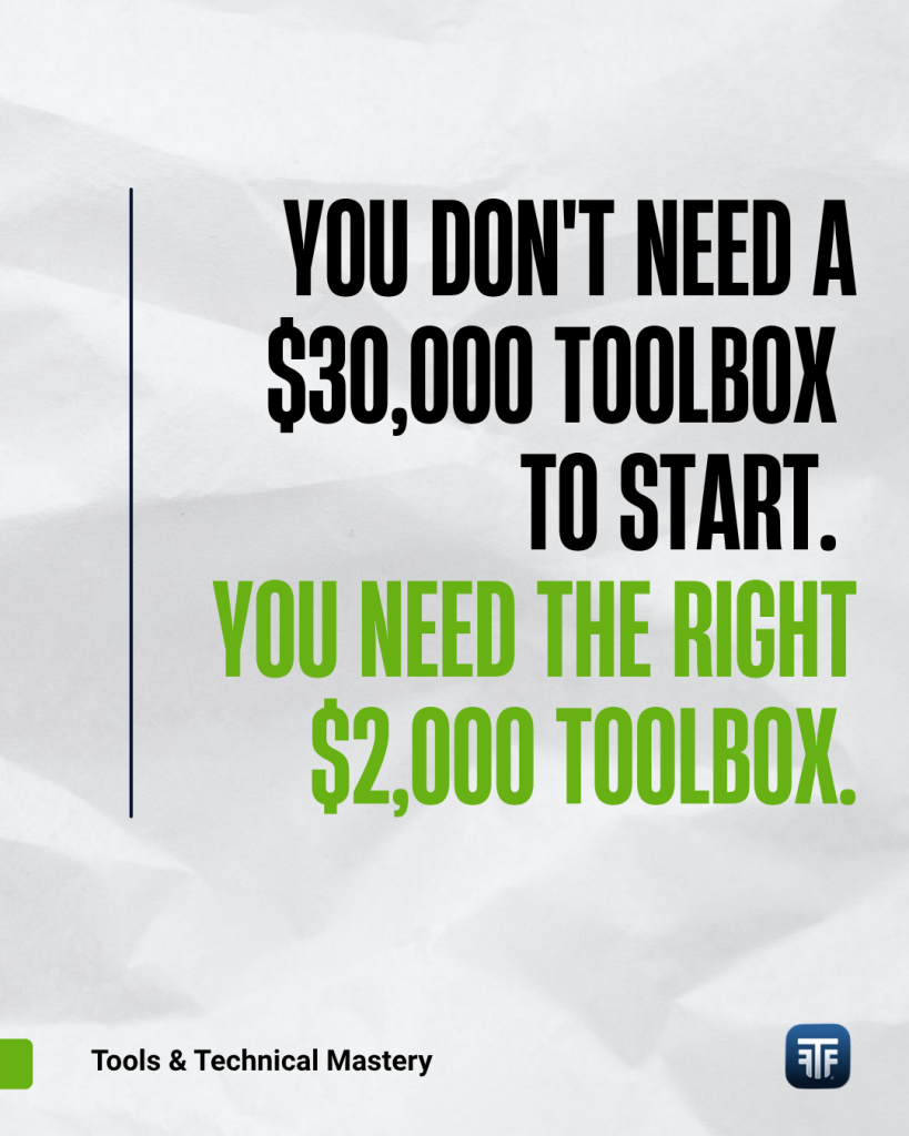 You don’t need a $30,000 toolbox to start. You need the right $2,000 toolbox – and a plan for building the rest over time.