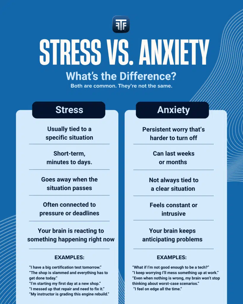 High-pressure situations are built into a skilled career. Tight deadlines, complex repairs, demanding customers, and the constant expectation to perform can keep your nervous system in overdrive. For some students, that pressure becomes chronic anxiety that affects everything.